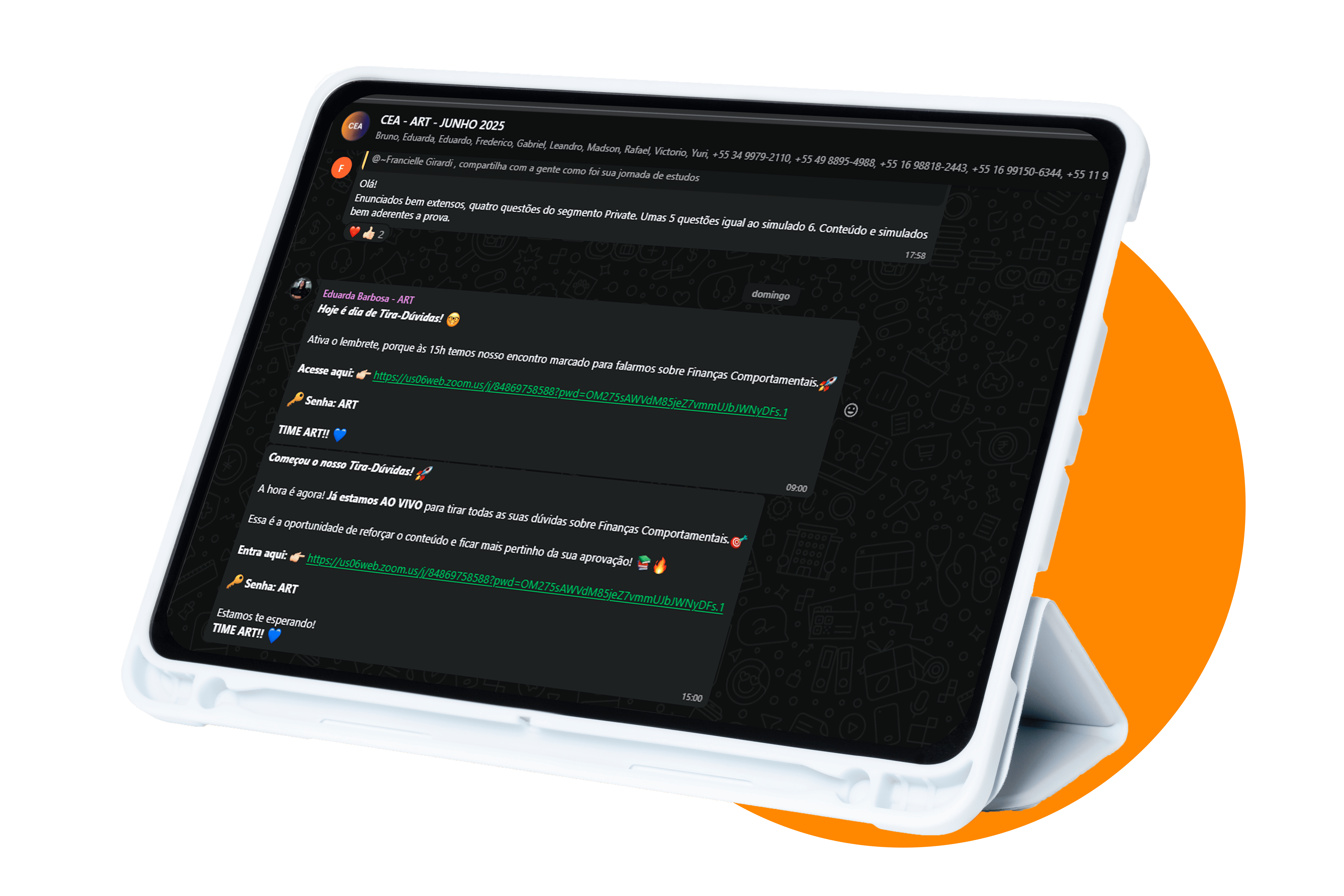Confira o que dizem nossos alunos aprovados nas principais Certificações Financeiras do Mercado têm a dizer sobre nossa metodologia, conteúdo e suporte, durante sua rotina até a aprovação.